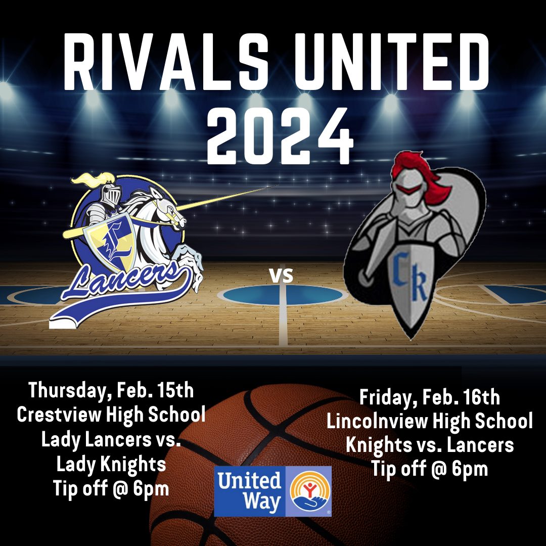 Rivals United started as a friendly competition between Crestview and Lincolnview student bodies to see who can raise the most money for the United Way. For the first year in 2016, the schools raised over $12,000. Every year the total has grown, and in 2023 the schools raised a combined total of over $38,000! Both schools participate in numerous events throughout the week including: spirit week activities, a daily SuperFan competition, FFA basketball game, dash for cash at both boys and girls basketball games, granny shoot out, and t-shirt sales. This year, the schools will aim to work together to bring in a grand total more than years past.